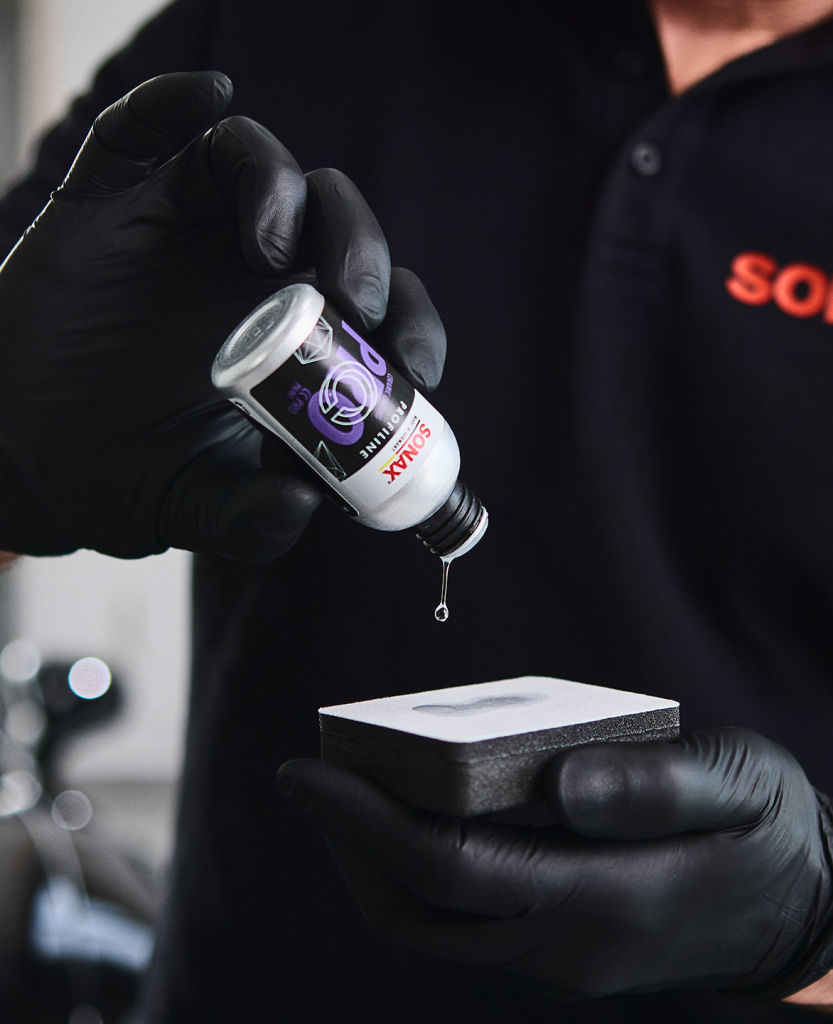 Desarrollado durante muchos años por SONAX la tecnología Si-Carbon es un tipo de sellado de pintura nuevo y de muy alta calidad. HybridCoating CC One consiste en una red polimérica de diferentes resinas a base de silicio(Si), que se refinan con grupos orgánicos (carbono) para formar protección tridimensional. La protección es más permanente que la de los sellados convencionales y,obtiene una superfi cie suave y lisa como la seda, así como un brillo reflectante permanente.